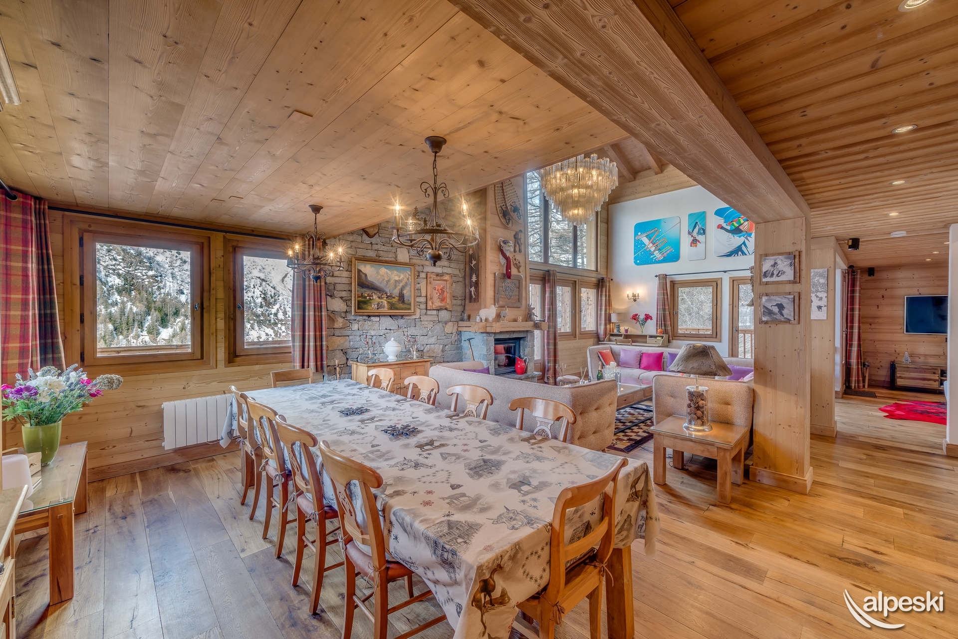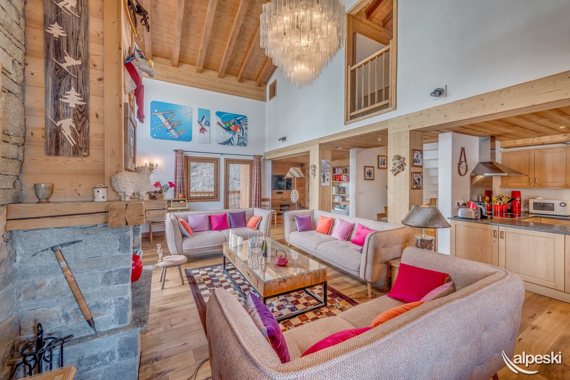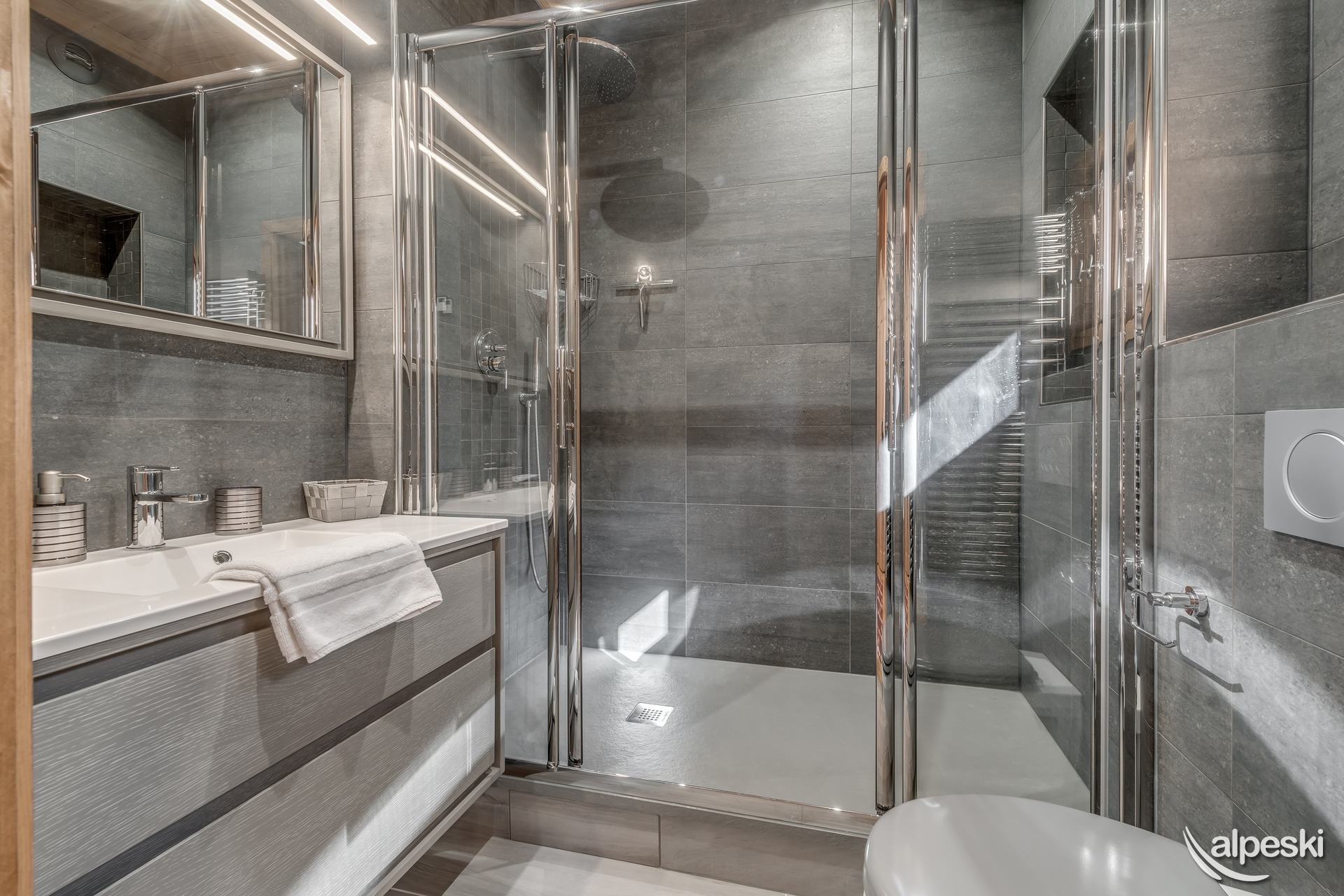 Chalet ZANSKAR - 7 habitaciones, 12 personas - 180 m² - 6 dormitorios y 6 baños. El Chalet ZANSKAR se encuentra en TIGNES LES BREVIERES, en la zona de Belvédère, a 500 m sobre el pueblo (zona comercial, pistas de esquí y telesquíes). Balcones y terrazas con orientación sur y suroeste. El chalet se distribuye en 3 plantas: PLANTA BAJA: - 2 dormitorios con 2 camas individuales convertibles en cama de matrimonio, mesita de noche y lámpara, TV de pantalla plana, 1 baño privado con bañera, radiador, secador de toallas e inodoro. - 2 dormitorios: 1 dormitorio con cama de matrimonio, 1 dormitorio con 2 camas individuales convertibles en cama de matrimonio, mesita de noche y lámpara en cada dormitorio, baño privado con bañera, toallero calefactado, lavabo e inodoro. - 1 jacuzzi al aire libre - Guardaesquís privado con secador de botas de esquí NIVEL 1: Entrada por la gran terraza, acceso a 1 gran salón bajo techo alto, con chimenea, - 1 comedor cerca de la cocina. - 1 sala de estar con estantería, sala de TV, home cinéma, canales internacionales, reproductor de DVD. - 1 WC independiente. - La cocina está abierta al salón-comedor con 1 frigorífico y congelador de 3 cajones, 1 lavavajillas, 1 horno, 1 horno microondas, 1 campana extractora, 4 placas vitrocerámicas, 1 hervidor de agua, cafetera Nespresso, 1 cafetera clásica, 1 tostadora NIVEL 2: - dormitorio abuhardillado con 2 camas individuales que se pueden convertir en una cama doble, mesita de noche y lámpara, TV de pantalla plana, baño privado con bañera, radiador toallero, lavabo e inodoro. - Suite principal abuhardillada con cama doble cerca de un gran ventanal al sur, armarios de almacenamiento, 1 baño con ducha con WC. SERVICIOS INCLUIDOS EN NUESTROS PRECIOS: - Wifi, ropa de cama y toallas, alfombras de baño, ropa, cuna y trona. - Limpieza final excepto cocina - 2 plazas de parking interior (gratis) Para cualquier plaza adicional: - Aparcamiento público exterior: reservar directamente con el proveedor de servicios INDIGO - No se aceptan mascotas/animales - Apartamento para no fumadores - Depósito de garantía: 3000€