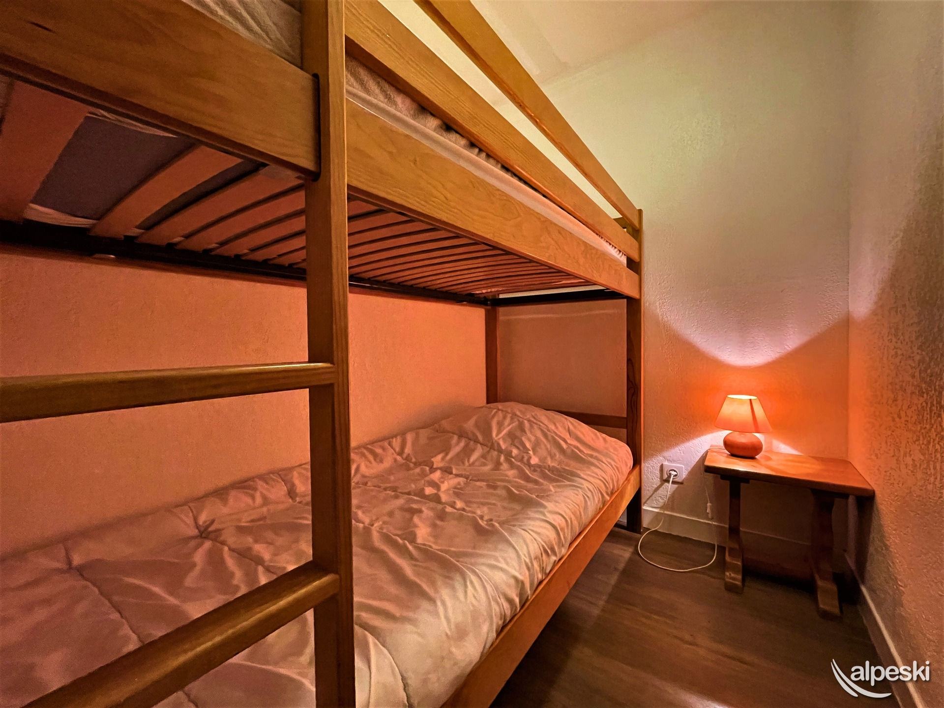 LES MENUIRES - Zona Reberty 1850. Residencia Les Côtes d'Or (apartamento 404), entrepiso de 4 habitaciones para 6 personas, 37 m² + 6 m²; 1,80 m, 4.ª planta con balcón, planta +1 desde la entrada del chalet por escalera, balcón orientado al noroeste. SERVICIOS INCLUIDOS (temporada de invierno / diciembre a abril): ropa de cama, limpieza de final de estancia, toallas, alfombras de baño, paños de cocina, kit de limpieza (esponja, lavavajillas, limpiador multiusos y pastillas para lavavajillas). Servicios disponibles bajo petición fuera de este periodo. OTROS SERVICIOS DISPONIBLES CON RESERVA: ropa de cama adicional (cama, baño, cocina, etc.), limpieza durante la estancia, servicios adicionales del hotel y otros servicios (sujetos a disponibilidad). Cocina: vitrocerámica (x4), campana extractora, horno microondas combinado, frigorífico (con congelador), lavavajillas, cafetera de cápsulas, hervidor de agua, tostadora. Salón: sofá cama individual (80 cm), televisión. Dormitorio 1: dos camas individuales (2x80 cm). Dormitorio 2: cama individual (80 cm). Dormitorio 3: cama individual (80 cm). Entrepiso: cama doble (140 cm). Baño: lavabo, bañera, toallero calefactado. Ducha: lavabo, ducha. Aseo independiente. Información adicional: Apartamento equipado con edredones. Calefacción colectiva e individual. No se admiten animales. Apartamento para no fumadores. Guardaesquís: nivel - 1 desde la entrada. Con reserva: ropa de cama, toallas, paños de cocina, alfombra de baño, limpieza de final de estancia, servicios de hostelería y otros servicios (sujeto a disponibilidad). Categoría: COMFORT. Sello de calidad del complejo: 3 copos de nieve "Oro".
