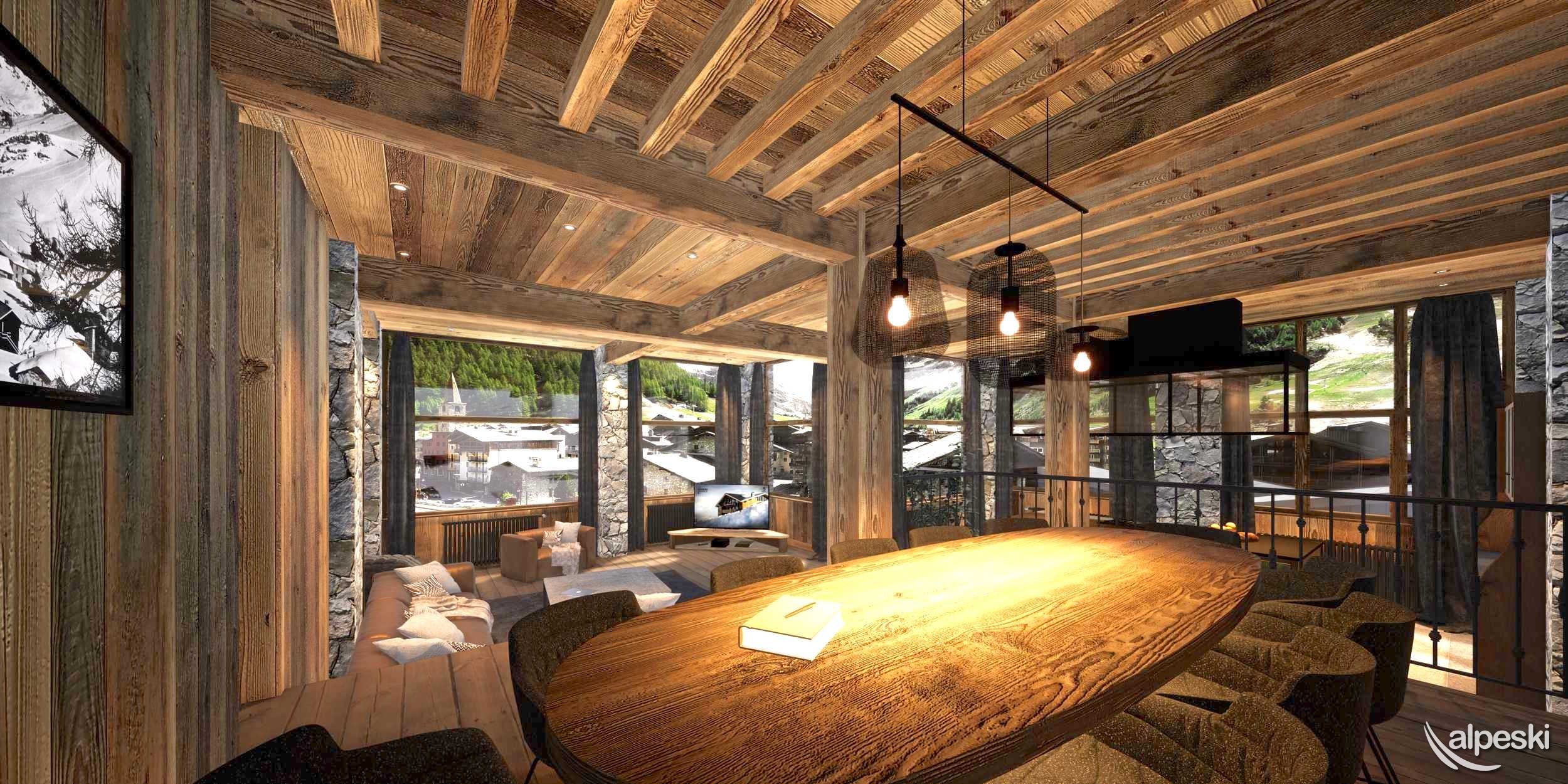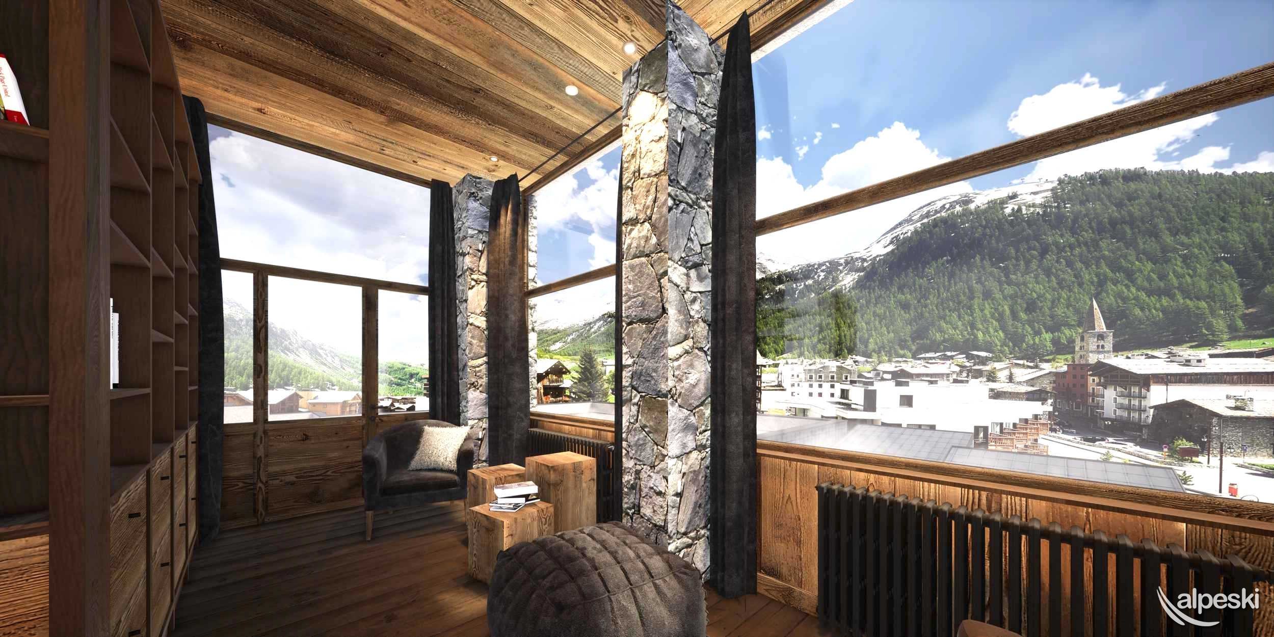 El hotel, ubicado en la plaza de la oficina de turismo, está a dos minutos a pie de los principales remontes y escuelas de esquí. Justo en el centro de Val d'Isère, también permite el acceso directo a las tiendas y restaurantes del complejo, y ofrece una suntuosa vista panorámica de los tejados lauze y el campanario del antiguo pueblo con el Face de Bellevarde como telón de fondo.