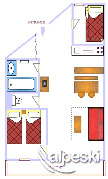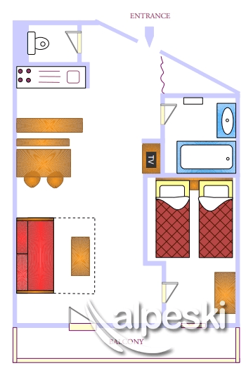 Se encuentra situada a 300 metros del centro deportivo y comercial, a 2.300 metros de altitud y a pie de las pistas y frente a los remontes.