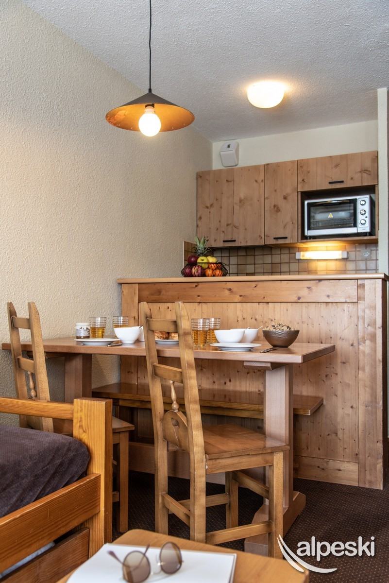 Recepción 24 horas, ascensores, cafetería con salones de esparcimiento, guarda-esquís, guarda maletas, vestuarios y duchas, tienda de deportes, panadería-comestibles, sala de juegos, restaurante “Le Chaudron Magique” con terraza sobre las pistas (posibilidad de media pensión o pensión completa) y el “Espace Ying Yang” con sauna, baño turco, servicio de masajes, osteópata. Garaje (limitado y de pago).