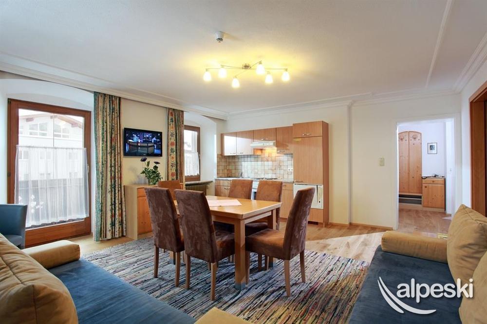 perfectly furnished, spacious apartments (bookable also as Bed & Breakfast or Half Board >> breakfast buffet; 3-course evening meal << possible) in the centre of Kirchberg, restaurant and pizzeria on the premises, breakfast buffet or half board available anytime at an extra charge. Train station approx. 300m away, supermarket.