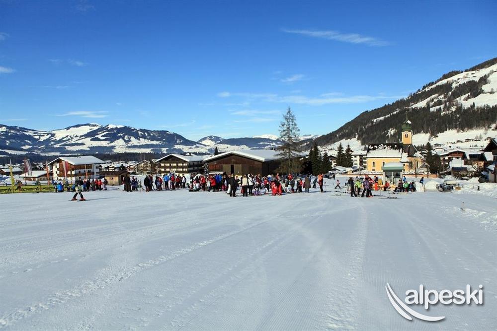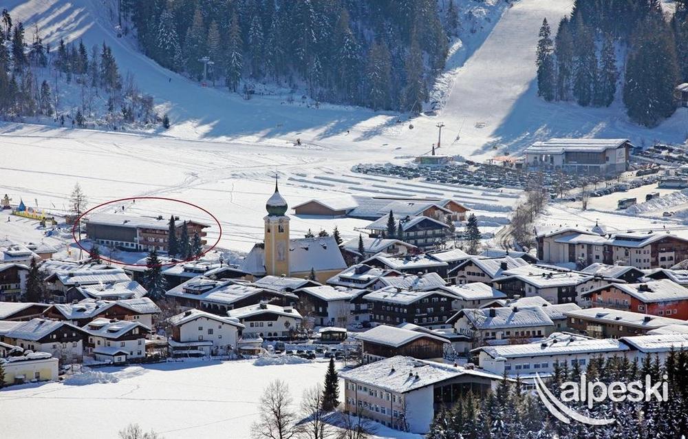 Turn left after the Hotel Mesnerwirt, in the direction of the Alpenrosenbahn, just before Skischule Top, entrance to the left.