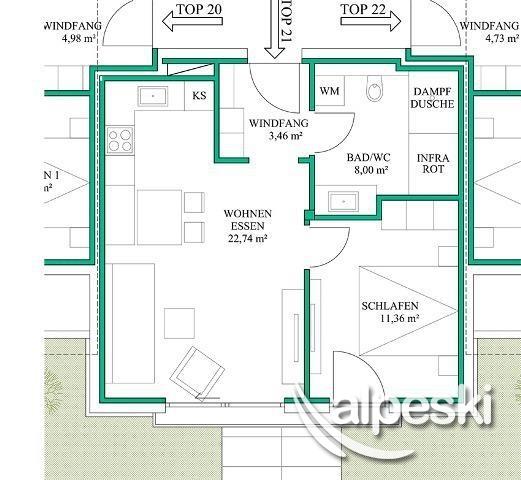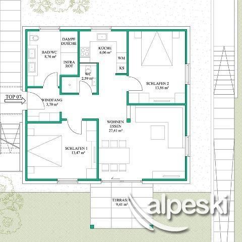 Individual underground parking space, lockable cellar allocation, ski boot dryer, additional parking facilities available. Maintained outer surroundings with attractive children's playground.