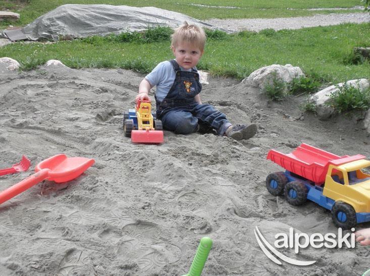 Children can let themselves go at our big playground with a giant sand pit and water attractions, swings, spring toys, slides and pedal tractors.