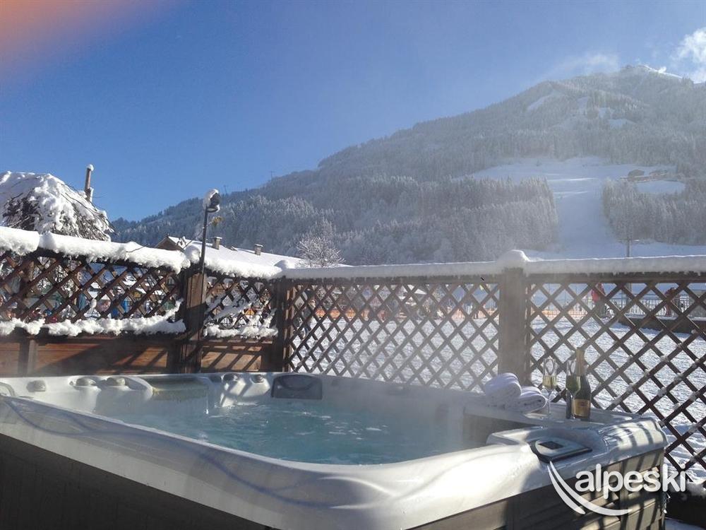 The apartment house is situated directly on the beginners ski slope from where you can access the SkiWelt Wilder Kaiser Brixental. Both ski hire facilities and a sports shop are on the premises, in addition to a ski storage room with ski boot dryers. The outdoor whirlpool, “wellness” area with sauna/saunarium and solarium.