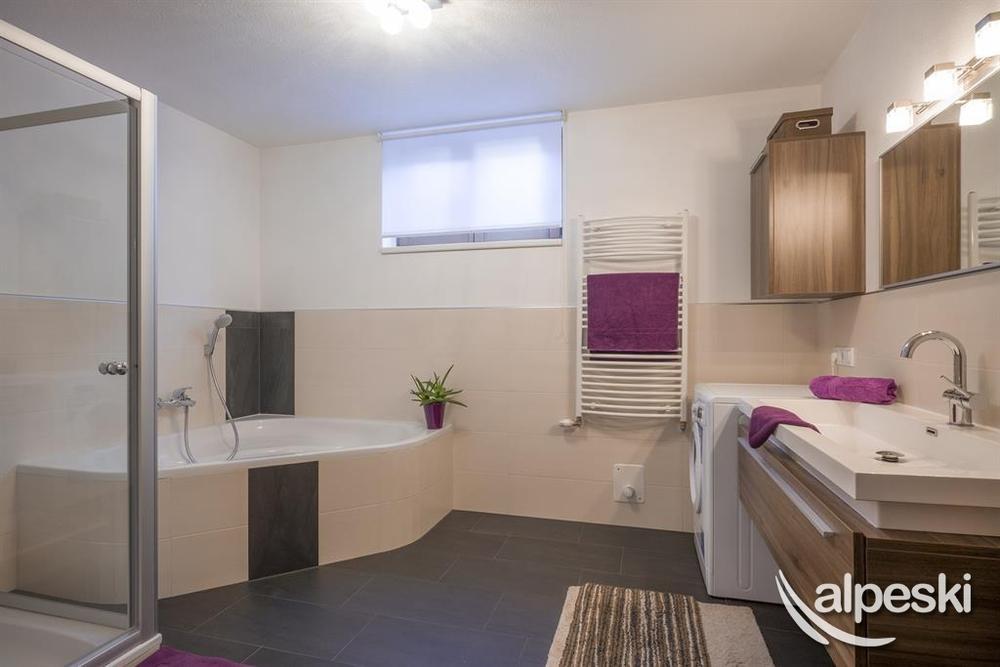 The apartment Alois is located in a top location in the center of Kirchberg in a quiet side road. The apartment is very generously divided and modern furnished. It is in a multi-family house. It is spread over 2 floors, basement and ground floor. It has 2 bedrooms, 2 bathrooms, kitchen with dining area, large living room with tiled stove and a huge garden which invites to sit outside.