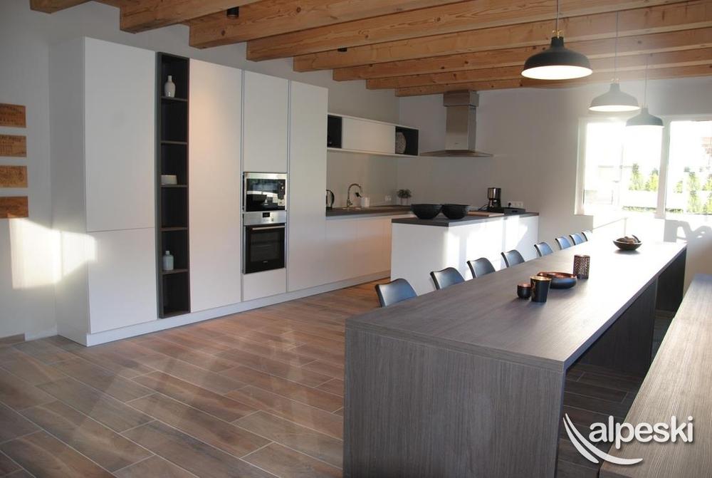 Large open and fully-equiped kitchen (refrigerator, freezer, oven, microwave, dishwascher, electric hobs) with large table and everything to prepare dinner of breakfast together. Electrical appliances available: toaster,