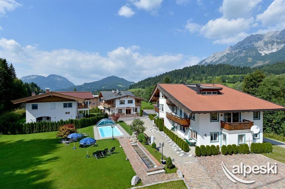 Altogether, in 3 buildings, there are 9 mondern, fully equipped apartments for 2-8 persons as well as 3 luxury suites of 120sqm for up to 7 persons. All apartments ahve wonderful views of the Wilder Kaiser Mountains from the balcony and terrace. Sun loungers are available free of charge in the well maintained gardens.