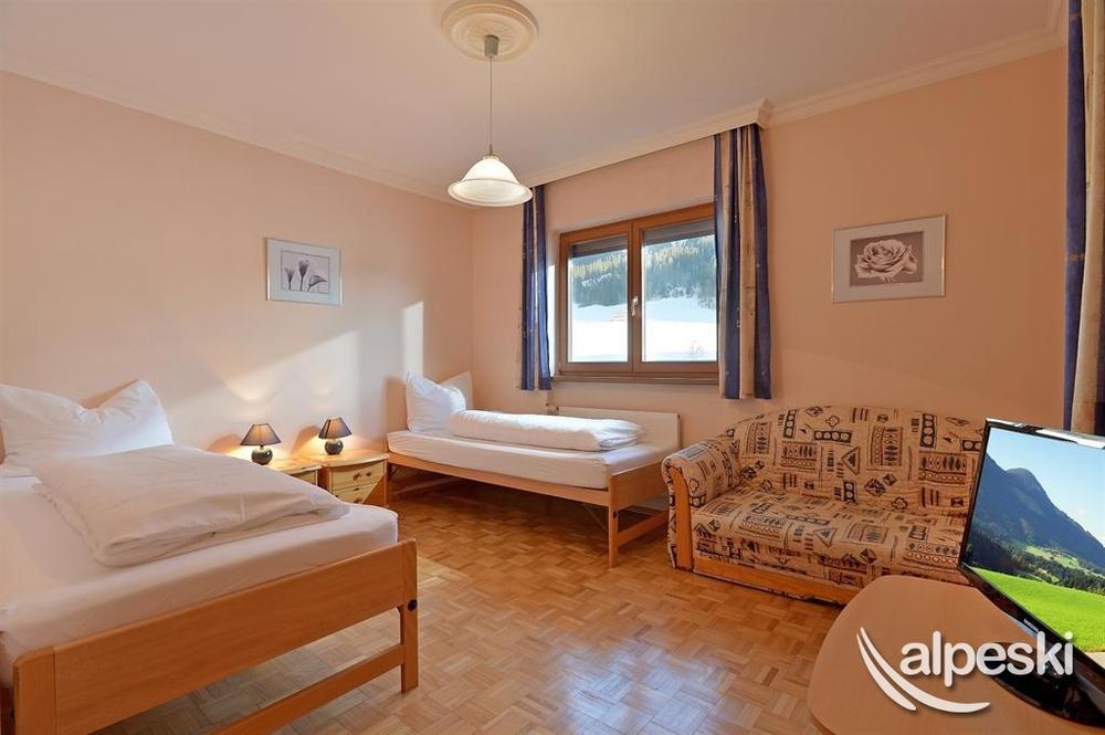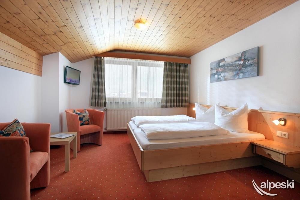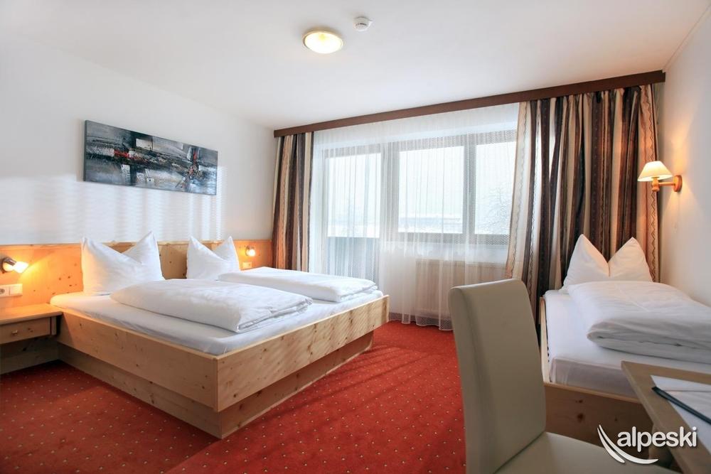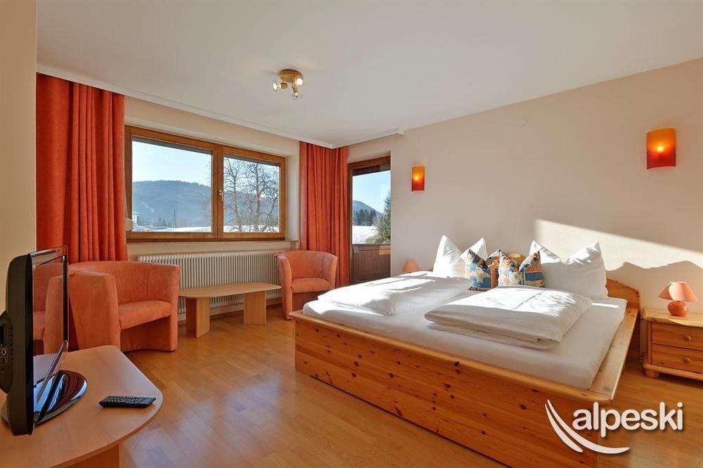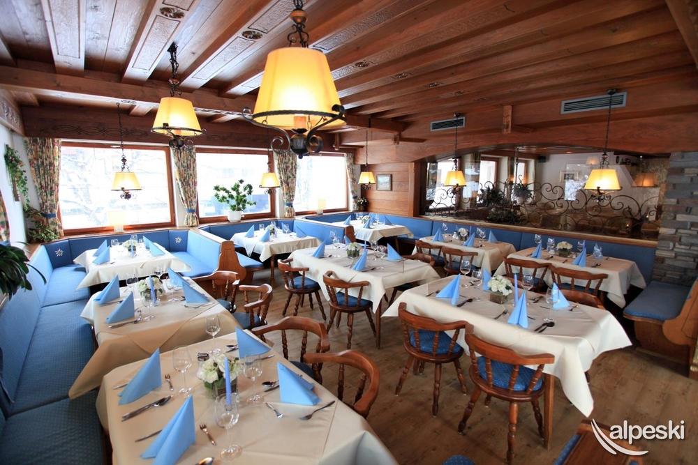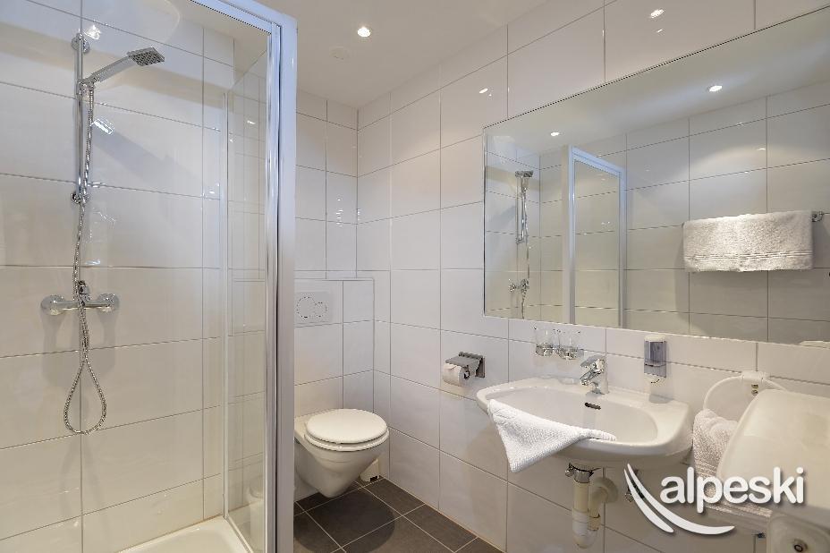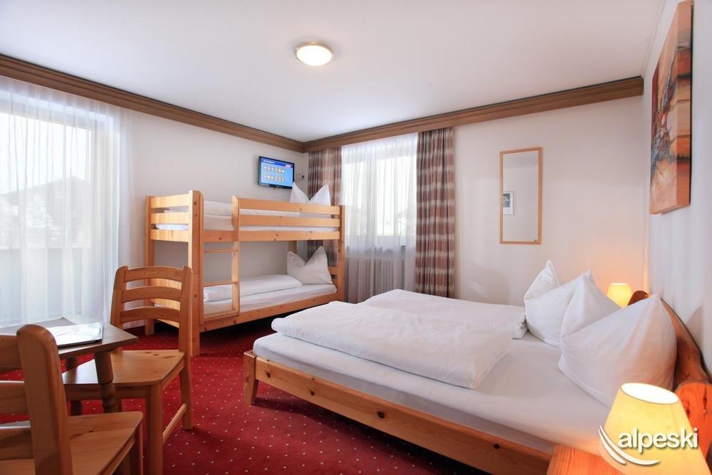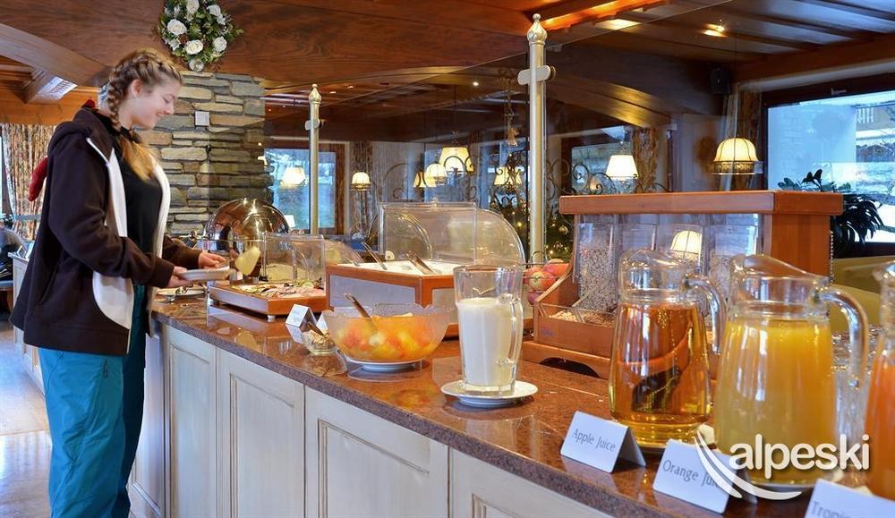 Centrally located 100m from the ski lifts. Doorstep skiing as well as ski bus stop in front of the hotel. Run by English family, offering exceptional service. Friendly pleasant atmosphere. Half board with breakfast buffet and 4-course dinner. Restaurant, bar, lounge. Large new wellness with sauna and infrared cabin. Ski room with boot dryer. Games room. Non smoking hotel. Free Wifi throughout. Double room with double bed, en-suite shower/WC, cable TV and balcony. Twin beds available on request.