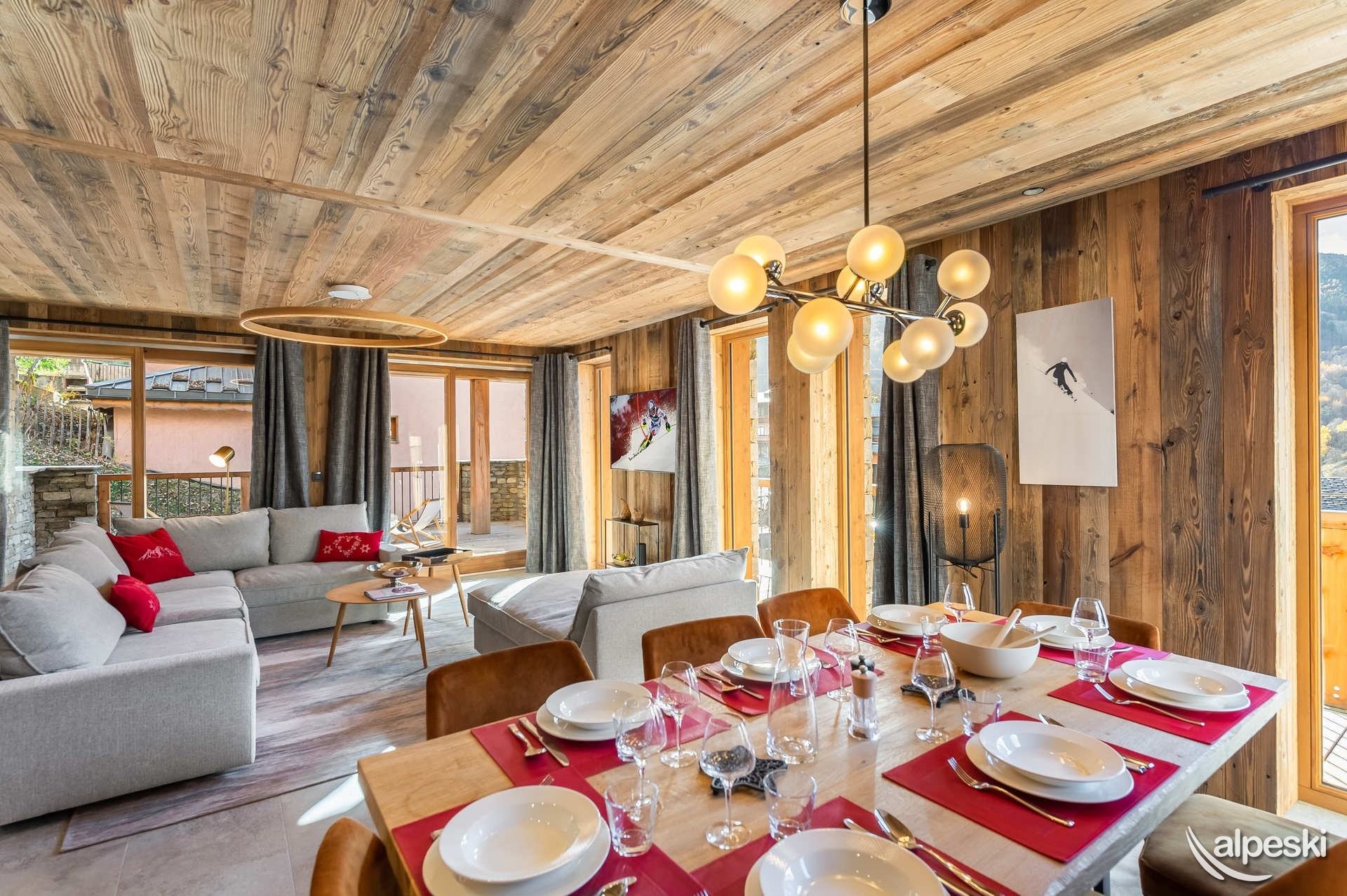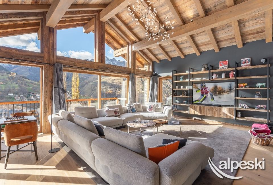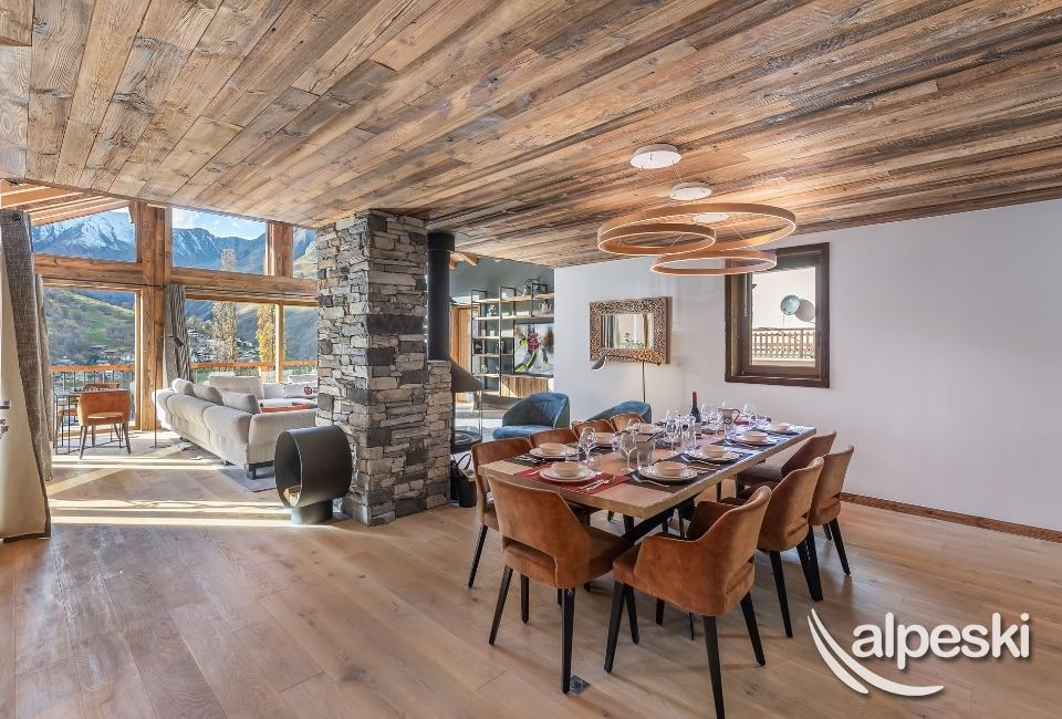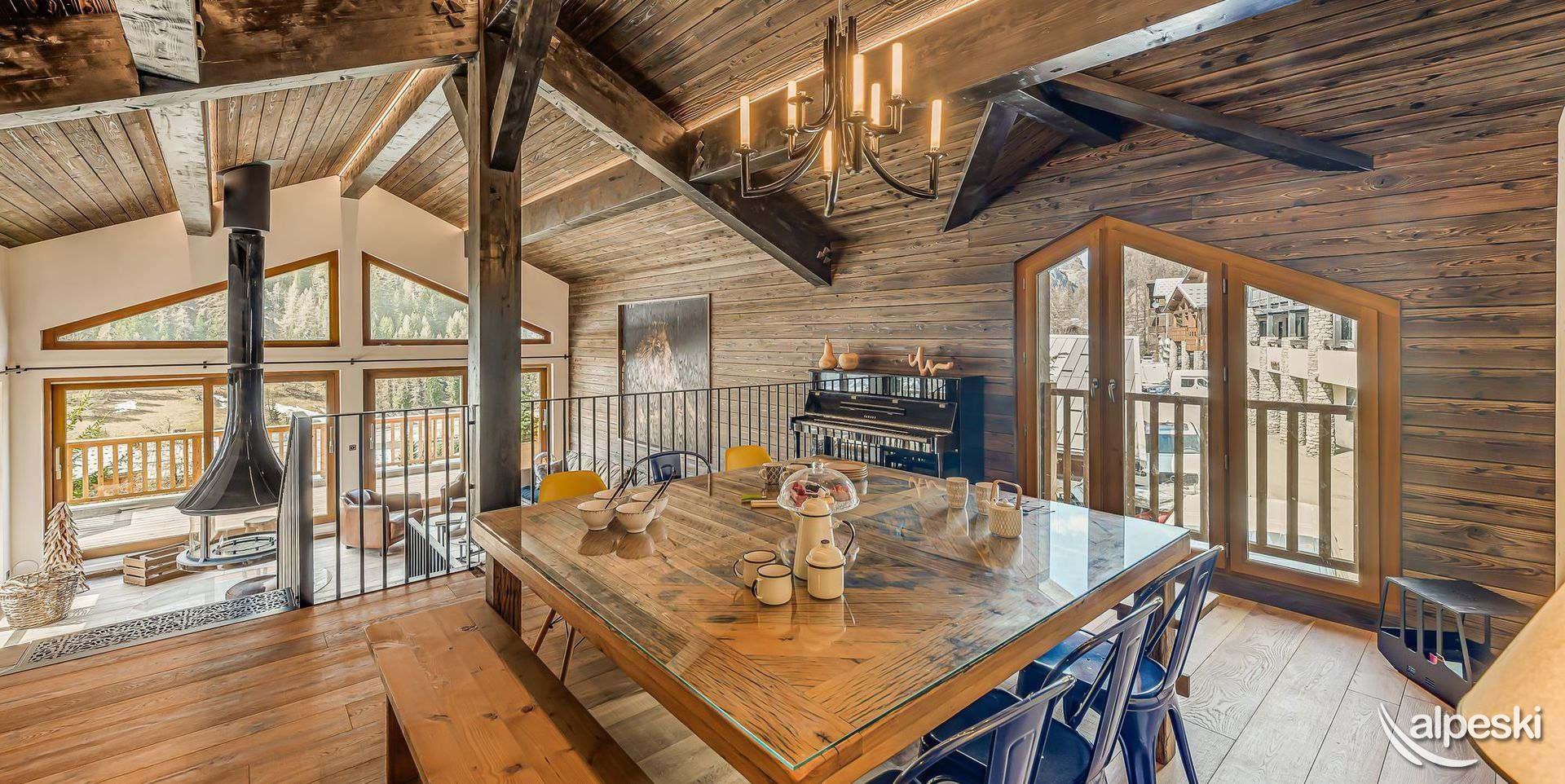Chalet LES SOURCES de la DAVIE*****. Chalet de lujo de 5 estrellas con servicios de hotel - Gama TIGNES CASA - 270 m² - 10 habitaciones, incluidas 6 SUITES - 13 personas - 5 niveles de vivienda. Orientación sur y suroeste. Vista panorámica del pueblo de TIGNES Les BREVIERES, la estación de esquí Vallon de la Sache, el DOME de la SACHE y los glaciares de MONT-POURRI. Piscina cubierta de contracorriente - Jacuzzi y sauna al aire libre - 100 m² de terrazas y balcones. Sala de home cinema. Piano vertical en el comedor. El Chalet LES SOURCES de la DAVIE***** se compone de la siguiente manera: NIVEL 0: ENTRADA DEL CHALET - ENTRADA PARA ESQUIADORES. - A 10 metros a pie del inicio del funicular de BREVIERES, con descenso directo al frente de nieve. - 1 entrada - entrada de esquiadores con SALA DE ESQUÍ que incluye portaesquís, secador de botas y guantes, armarios para guardar chaquetas de esquí y cascos. - Lavandería - con lavadora y secadora. - SUITE 1 - SUR - 'SUITE JEAN CLAUDE KILLY 25,6 m² + 18 m² de terraza exterior de madera: 1 cama doble King Size, escritorio y armarios empotrados, TV LG 55', WIFI. WC independiente, baño con bañera, ducha, mueble de lavabo, toallero calefactado. - SUITE 2 - OESTE - 'SUITE JEAN VUARNET 18,9 m² + 18 m² de terraza exterior (compartida con la Suite 1): 1 cama doble King Size, armarios empotrados, TV LG de 40', WIFI. WC independiente, baño con ducha, mueble de lavabo, toallero calefactado. NIVEL +1 - Bajo el techo del chalet, la gran sala de estar SALÓN - COMEDOR y COCINA. Grandes ventanales con vistas al paisaje y salida a las terrazas sur y oeste. Cuenta con chimenea panorámica y piano vertical. WIFI. La cocina está totalmente equipada: placa de cocina, campana extractora, horno, microondas, frigorífico, congelador, vinoteca y lavavajillas. PLANTA -1 - SUITE 3 - SUR - SUITE JOHAN CLAREY 20,94 m² + 45 m² de terraza exterior de madera y jacuzzi: 1 cama doble king size, armarios empotrados, TV LG de 40 pulgadas, WC y baño con ducha, mueble de lavabo y toallero calefactado. - SUITE 4 - OESTE - SUITE EDGAR GROSPIRON 23,7 m² + 45 m² de terraza exterior (compartida con la Suite 3) y jacuzzi: 1 cama doble king size, armarios empotrados, TV LG de 40 pulgadas, WC independiente, baño con ducha, mueble de lavabo y toallero calefactado. Sala de cine de 28 m² con sillones, gran pantalla de cine, barra de sonido y futbolín Bonzini. PLANTA 2 - SUITE 5 - OESTE - SUITE CAROLE MERLE (17,54 m² + terraza exterior con chili): 1 cama doble King Size, armarios empotrados, WC y baño con ducha, mueble de lavabo y toallero calefactado. SUITE 6 - SUR - HABITACIÓN INFANTIL - SUITE TESSA WORLEY (15,14 m² + terraza exterior (compartida con la Suite 5): 1 cama doble de 140 cm + 1 litera de 90 cm, armarios empotrados y zona de juegos. Baño infantil con ducha, mueble de lavabo y toallero calefactado. WC independiente. PISCINA CUBIERTA de 18,41 m². Piscina cubierta, natación contracorriente, salida a sauna exterior. SERVICIOS DEL HOTEL INCLUIDOS EN EL PRECIO DE LA ESTANCIA: - Recepción, le damos la bienvenida directamente en el chalet. - Sábanas, toallas y camas hechas a su llegada. - Servicio de habitaciones: renovado a mitad de estancia. - Chef a domicilio bajo petición y con suplemento. - Limpieza final, excepto cocina. - Conexión wifi en todas las habitaciones. - Servicio de transporte privado bajo petición a TIGNES y Val d'ISERE. - 1 cuna y 1 trona. - Chalet para no fumadores. - No se admiten mascotas. - Depósito de garantía de 6000,00 euros.