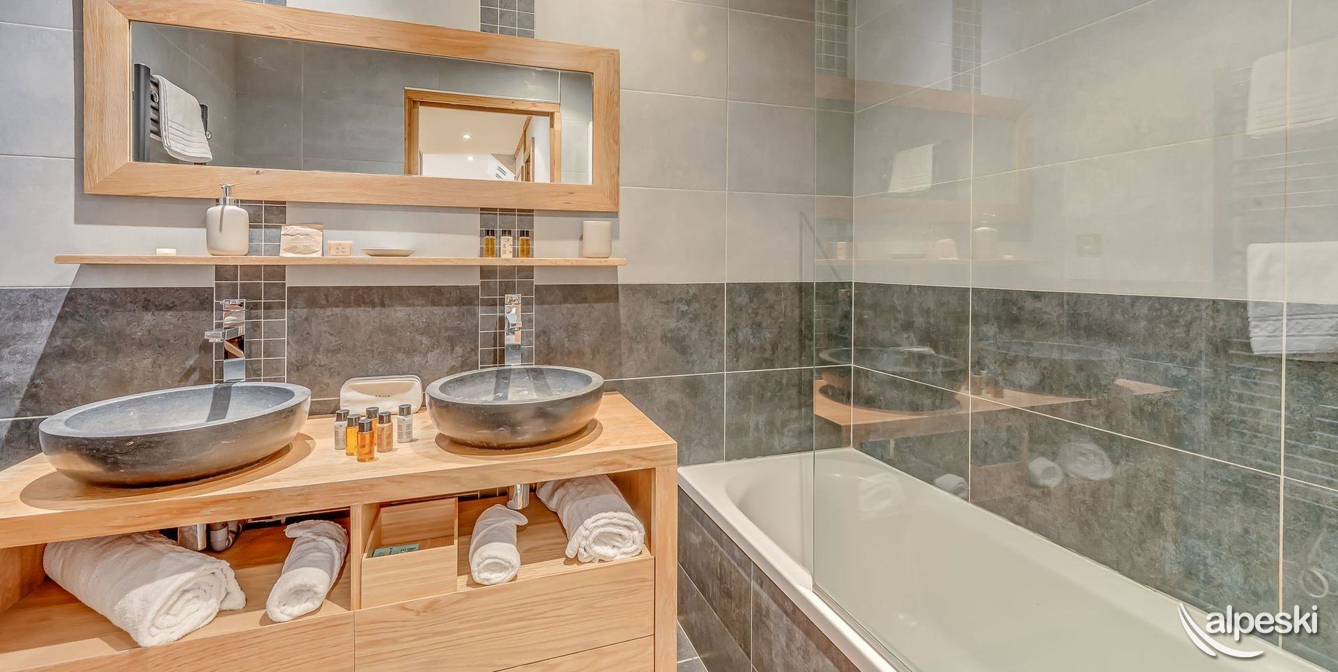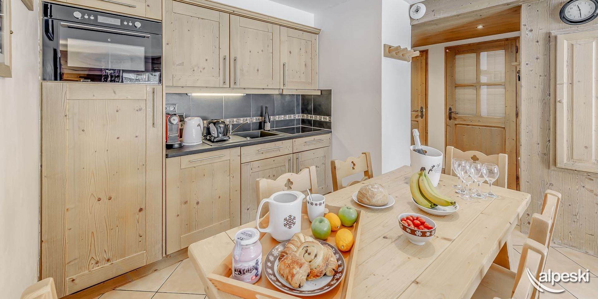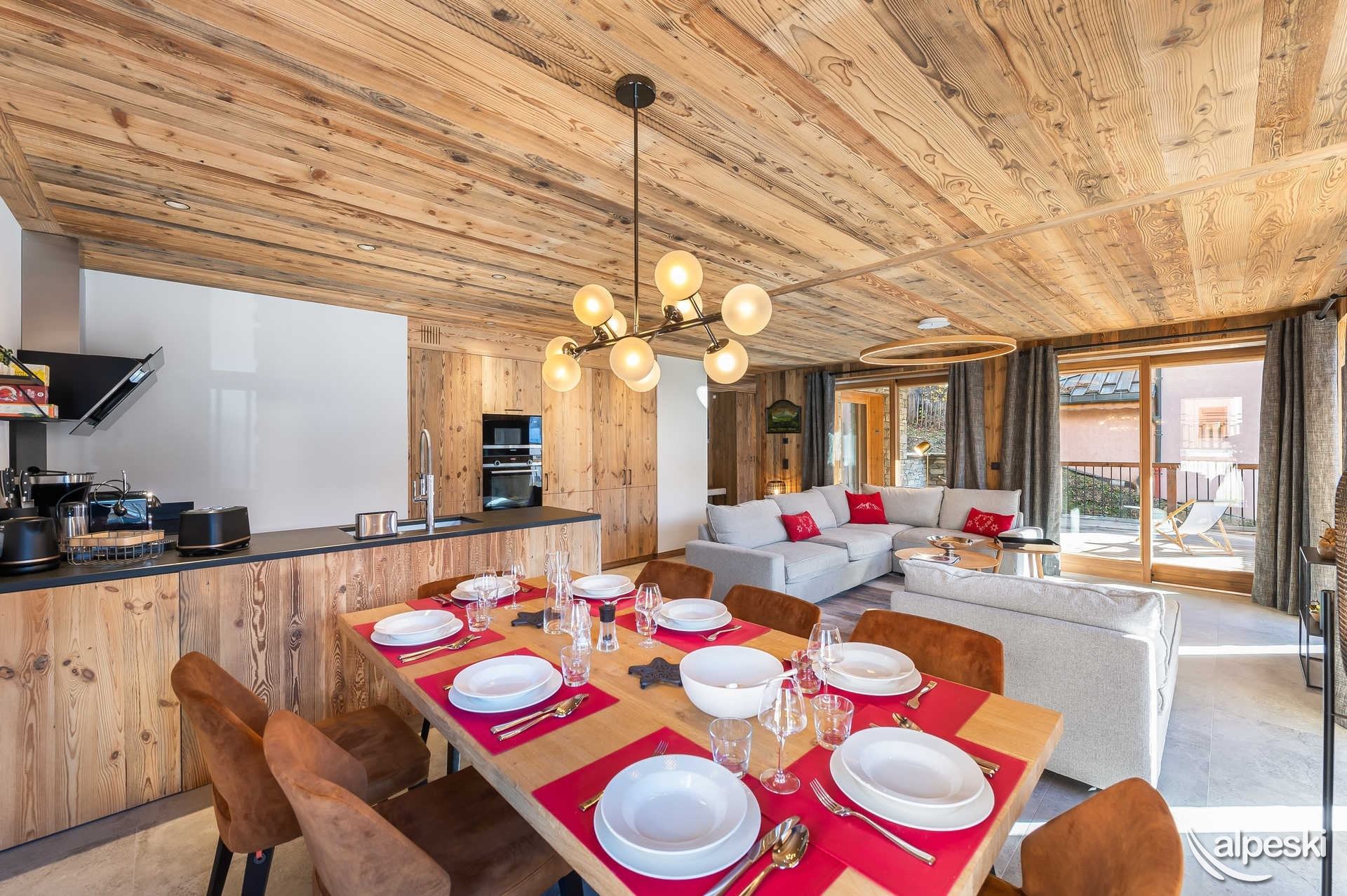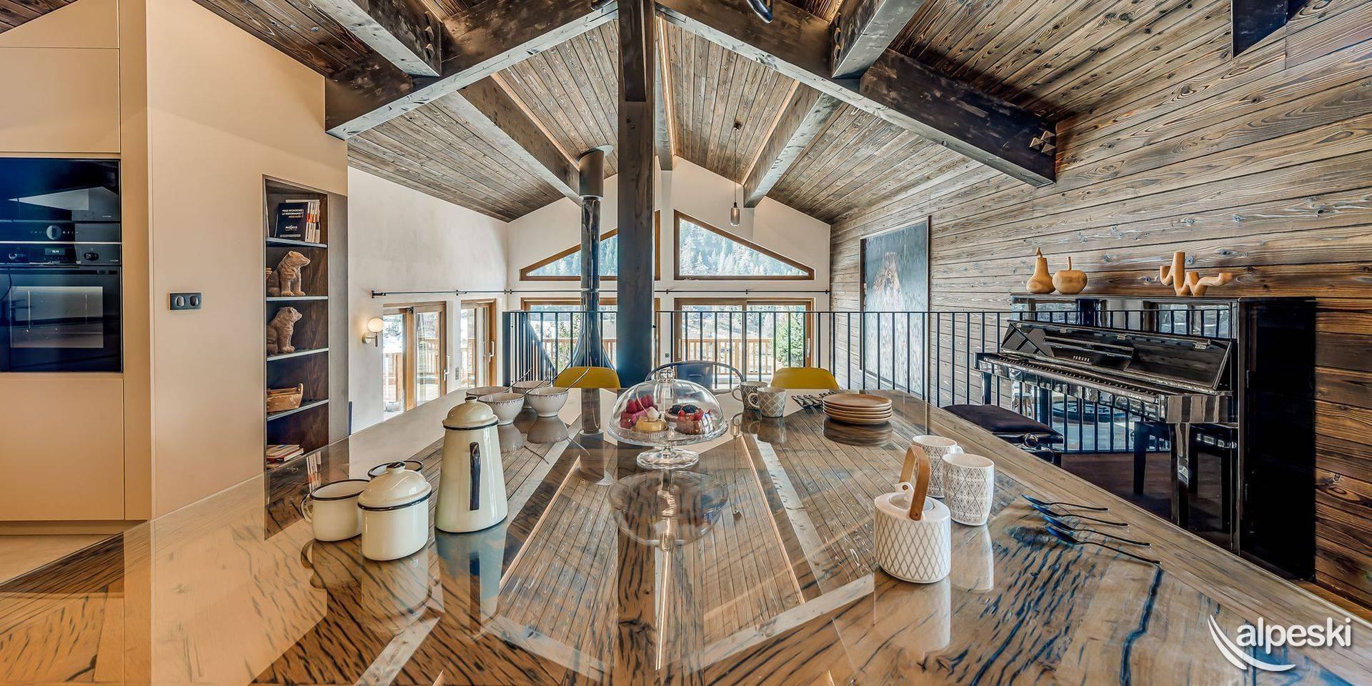 Chalet LES SOURCES de la DAVIE*****. Chalet de lujo de 5 estrellas con servicios de hotel - Gama TIGNES CASA - 270 m² - 10 habitaciones, incluidas 6 SUITES - 13 personas - 5 niveles de vivienda. Orientación sur y suroeste. Vista panorámica del pueblo de TIGNES Les BREVIERES, la estación de esquí Vallon de la Sache, el DOME de la SACHE y los glaciares de MONT-POURRI. Piscina cubierta de contracorriente - Jacuzzi y sauna al aire libre - 100 m² de terrazas y balcones. Sala de home cinema. Piano vertical en el comedor. El Chalet LES SOURCES de la DAVIE***** se compone de la siguiente manera: NIVEL 0: ENTRADA DEL CHALET - ENTRADA PARA ESQUIADORES. - A 10 metros a pie del inicio del funicular de BREVIERES, con descenso directo al frente de nieve. - 1 entrada - entrada de esquiadores con SALA DE ESQUÍ que incluye portaesquís, secador de botas y guantes, armarios para guardar chaquetas de esquí y cascos. - Lavandería - con lavadora y secadora. - SUITE 1 - SUR - 'SUITE JEAN CLAUDE KILLY 25,6 m² + 18 m² de terraza exterior de madera: 1 cama doble King Size, escritorio y armarios empotrados, TV LG 55', WIFI. WC independiente, baño con bañera, ducha, mueble de lavabo, toallero calefactado. - SUITE 2 - OESTE - 'SUITE JEAN VUARNET 18,9 m² + 18 m² de terraza exterior (compartida con la Suite 1): 1 cama doble King Size, armarios empotrados, TV LG de 40', WIFI. WC independiente, baño con ducha, mueble de lavabo, toallero calefactado. NIVEL +1 - Bajo el techo del chalet, la gran sala de estar SALÓN - COMEDOR y COCINA. Grandes ventanales con vistas al paisaje y salida a las terrazas sur y oeste. Cuenta con chimenea panorámica y piano vertical. WIFI. La cocina está totalmente equipada: placa de cocina, campana extractora, horno, microondas, frigorífico, congelador, vinoteca y lavavajillas. PLANTA -1 - SUITE 3 - SUR - SUITE JOHAN CLAREY 20,94 m² + 45 m² de terraza exterior de madera y jacuzzi: 1 cama doble king size, armarios empotrados, TV LG de 40 pulgadas, WC y baño con ducha, mueble de lavabo y toallero calefactado. - SUITE 4 - OESTE - SUITE EDGAR GROSPIRON 23,7 m² + 45 m² de terraza exterior (compartida con la Suite 3) y jacuzzi: 1 cama doble king size, armarios empotrados, TV LG de 40 pulgadas, WC independiente, baño con ducha, mueble de lavabo y toallero calefactado. Sala de cine de 28 m² con sillones, gran pantalla de cine, barra de sonido y futbolín Bonzini. PLANTA 2 - SUITE 5 - OESTE - SUITE CAROLE MERLE (17,54 m² + terraza exterior con chili): 1 cama doble King Size, armarios empotrados, WC y baño con ducha, mueble de lavabo y toallero calefactado. SUITE 6 - SUR - HABITACIÓN INFANTIL - SUITE TESSA WORLEY (15,14 m² + terraza exterior (compartida con la Suite 5): 1 cama doble de 140 cm + 1 litera de 90 cm, armarios empotrados y zona de juegos. Baño infantil con ducha, mueble de lavabo y toallero calefactado. WC independiente. PISCINA CUBIERTA de 18,41 m². Piscina cubierta, natación contracorriente, salida a sauna exterior. SERVICIOS DEL HOTEL INCLUIDOS EN EL PRECIO DE LA ESTANCIA: - Recepción, le damos la bienvenida directamente en el chalet. - Sábanas, toallas y camas hechas a su llegada. - Servicio de habitaciones: renovado a mitad de estancia. - Chef a domicilio bajo petición y con suplemento. - Limpieza final, excepto cocina. - Conexión wifi en todas las habitaciones. - Servicio de transporte privado bajo petición a TIGNES y Val d'ISERE. - 1 cuna y 1 trona. - Chalet para no fumadores. - No se admiten mascotas. - Depósito de garantía de 6000,00 euros.