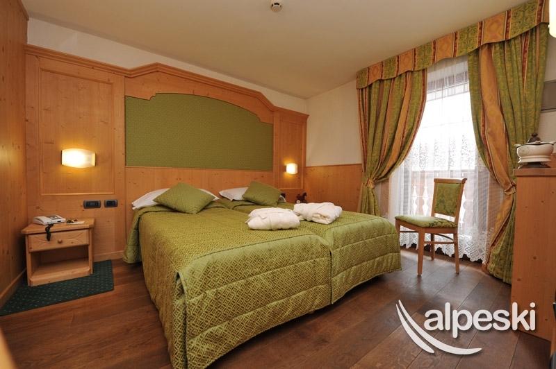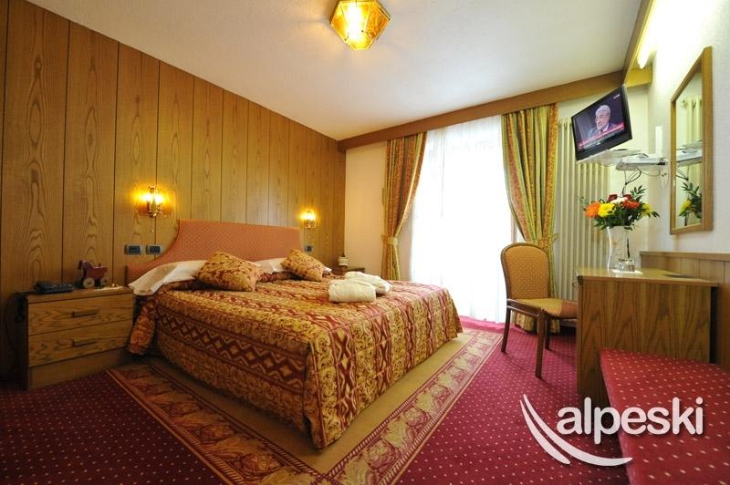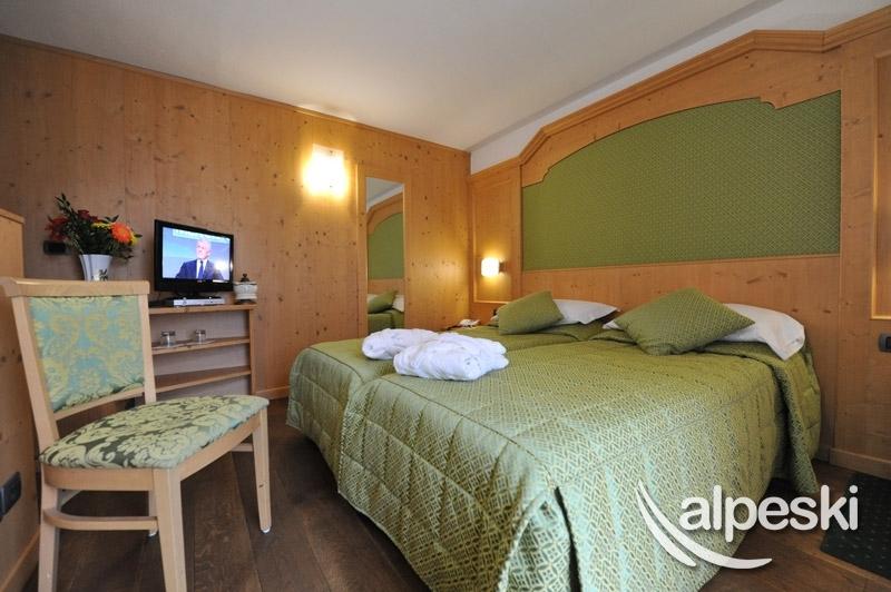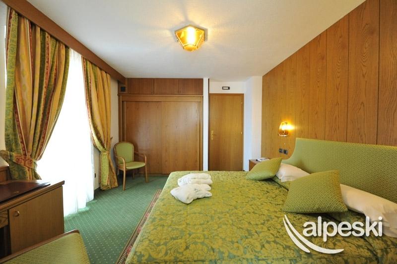 Las habitaciones del Excelsior están decoradas en un estilo alpino con muebles de madera natural. Todas tienen balcón y minibar.