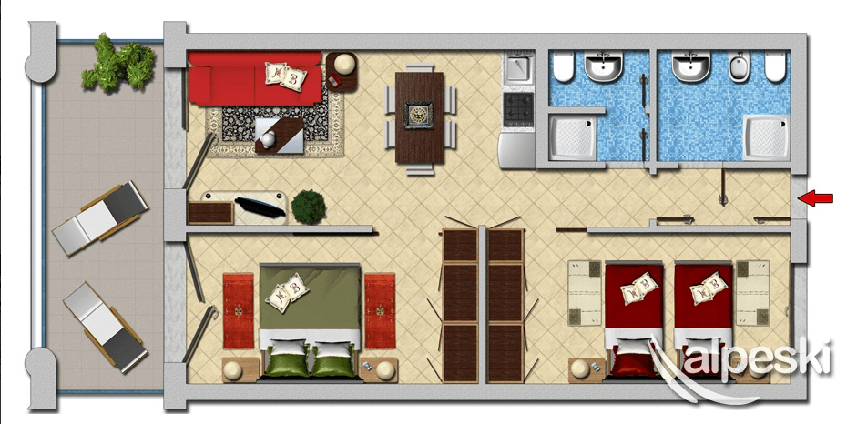 Los apartamentos Villaggio Olimpico se encuentran situados a pie de pista (50 m aprox.).